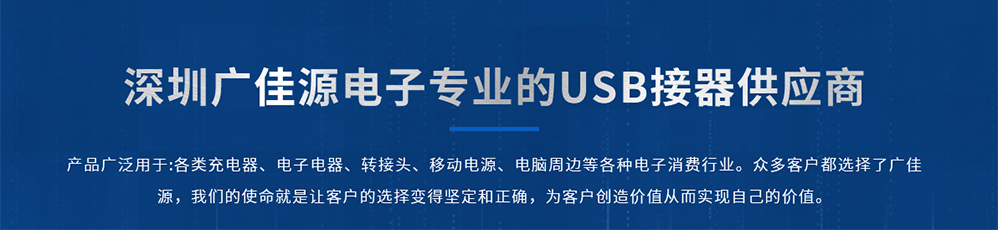 廣佳源主要經營成產USB2.0接口/USB3.0系列、MINI USB接口系列、MICRO USB接口系列等產品規格眾多。自創立以來,始終堅持以“優異的品質和安全可靠”的質量方針,全心全意為配套單位提供滿意服務,并不斷引進目前最先進的設備和進口電子元器件,在各個開發部、工程部、生產部的配合下從事線路技術的開發和研究,使產品在競爭激烈的市場上更具生命力。